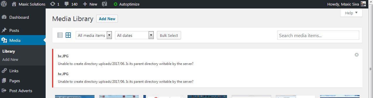 WordPress is a wonderful cms platform for managing websites. While writing a post, need to upload some images on wordpress using Add Media option. In first time wordpress install using auto tools such as installatron,softaculous.In that time don’t get this type of error .  Manual upload to the wordpress tool to direct hosting server using cplesk or cpanel file manager got some issues due to following reasons
